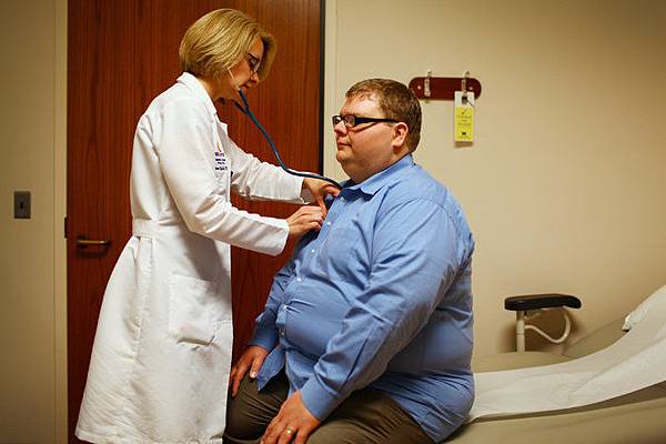 圖片說明 手術前的凱斯正在接受診察。過去幾年來,他成功實施過幾次短暫節食,但體重總是又胖回來。凱斯說:「我已嘗試過任何我所能做的一切。」