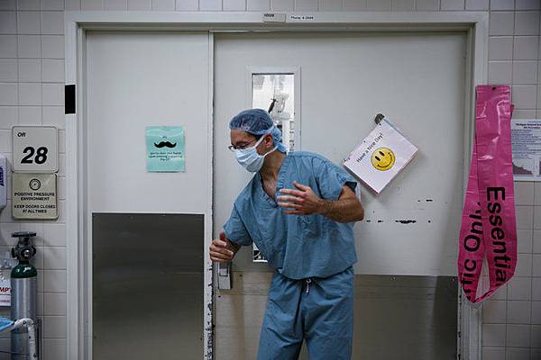 圖片說明 法班醫師正在為腹腔鏡胃袖狀切除手術準備,拍攝於上個月。