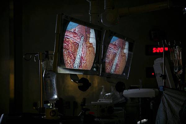 圖片說明 這是進行胃繞道手術時,手術室中的螢幕,畫面是關於移除大部分的胃以及將小腸改道。